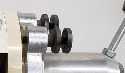 If the belt tracking is not centered, unlock the tracking adjustment knobs and SLOWLY make SMALL adjustments to the knobs. Allow the belt to settle into it’s new position before making more adjustments. Once the belt is running in the center of the rollers and platen, verify that both adjustment knobs are touching the housing. It is common for one knob to be in contact with the housing and the other to be floating a bit away from the housing. Once both knobs are touching the housing, lock the knobs securely.