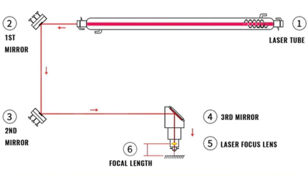 To test the alignment of the mirror in the tube, remove the lens attachment. Use a flat target and pulse the laser at the top and bottom of the bed height. Change the angle of the beam with the mirror 3 screws, and the accuracy by moving mirror 2 mount side to side.