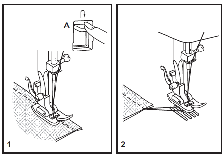 To secure the beginning and the end of a seam, press down the reverse sewing lever (A). Then, sew a few reverse stitches.