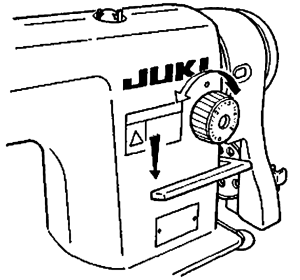 - Raise the presser foot by winding the handwheel (a) counterclockwise