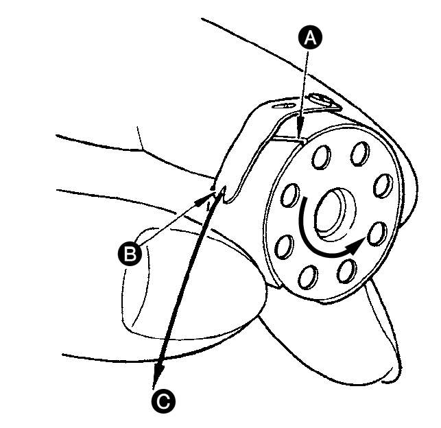 - Turn tension adjustment screw 2 clockwise (in direction C), to increase bobbin thread tension.