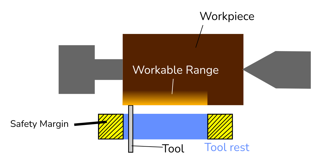 Once the position of the tool rest is set spin the workpiece by hand and ensure the clearance is appropriate.